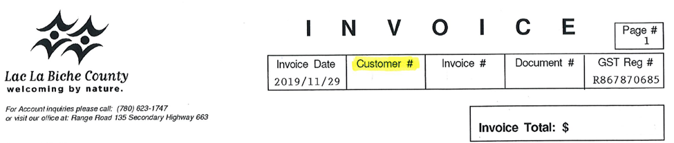 If you have not received your invoice or would like to enquire about your balance, please contact us at 780-623-1747. Additionally, to avoid future mail disruptions with your invoices, please contact us to sign up to receive your invoices or tax notices by email.
